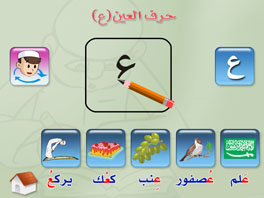 لقطة لشاشة حرف الـ (ع) في قرص سعود وسارة في واحة الحروف