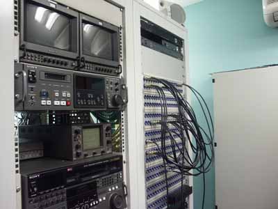 صورة داخلية لأجهزة الأستوديو ويظهر فيها أجهزة التسجيل والتحويل